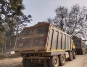 अवैध मिट्टी खनन व डंपरों के चलने से रास्ते हुए बदहाल 15 फुट गहरा खेतों को खोद डाला गया।