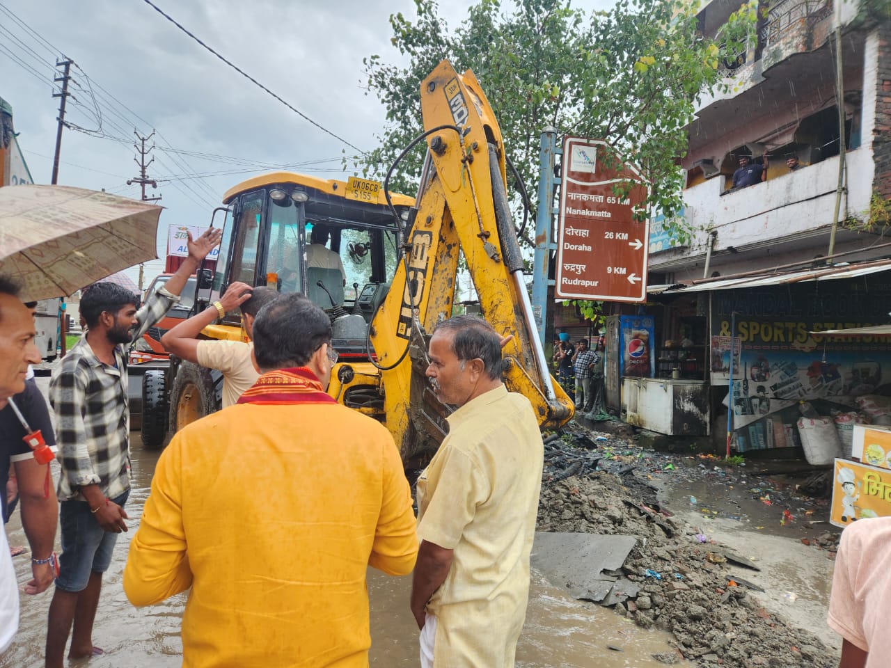 रुद्रपुर। (उपभोक्ता खबर)जाफरपुर मोड़ स्थित मार्किट मे पिछले लम्बे अरसे से जलभराव की समस्या का सामना करना पड़ रहा है जहाँ एक बार फिर बारिश के कारण पानी सड़क पर जमा हो गया ओर व्यापारीयों की दुकानों पर पानी भरने से जाने से लोगो मे खासा रोष देखने को मिला।वही विधायक शिव अरोरा स्थानीय लोगो की सूचना पर तत्काल भारी बारिश मे मौके पर पहुँचे ओर लोगो के साथ स्थलीय मुआवजा किया ओर मौके पर जल निकासी की समस्या को जाना।विधायक शिव अरोरा ने कहा जाफरपुर मे पिछले काफ़ी समय से नेशनल हाइवे द्वारा नाला निर्माण न होने के चलते वहाँ बारिश होने पर कई कॉलोनीयों व वहाँ की मार्किट मे पानी भर जाने से लोगो के व्यापार, जनजीवन प्रभावित होते आ रहा है, वही विधायक द्वारा बताया गया जैसे ही काफ़ी समय पहले लोगो द्वारा यह विषय उनके संज्ञान मे आने के बाद तब के समय उन्होंने एनएच पीडी से वार्ता कर इसके निर्माण का प्रस्ताव भेजा था, जिसमे 50 लाख से अधिक की धनराशि नेशनल हाईवे अथॉरिटी द्वारा जारी कर दी गई है ओर विधायक ने अश्वस्त किया, कि बरसात रुकने के बाद इसके निर्माण का कार्य आरम्भ करवाया जायेगा, जिससे यह हर बार की जल निकासी की समस्या से यहाँ के लोगो को निजाद मिल सके, साथ ही विधायक शिव अरोरा ने अस्थायी जल निकासी हेतु पीडब्ल्यूडी विभाग से जेसीबी मंगवा कर तत्काल नाला सफाई करवा कर पानी निकलने का कार्य स्वयं मौके पर खड़े होकर करवाया गया,उन्होंने कहा निश्चित रुप से यह समस्या लम्बे समय से चली आ रही थी,जिसका समाधान नाला निर्माण होने के बाद निश्चित रूप से आने वाले समय में हो जाएगा। इस अवसर पर स्थानीय लोगो के बुलाने पर पहुँचे विधायक अरोरा की बात सुन वहाँ के लोगो मे एक उम्मीद जगी ओर निश्चित ही भविष्य मे जल भराव की समस्या का समाधान नाला निर्माण के बाद हो जायेगा।