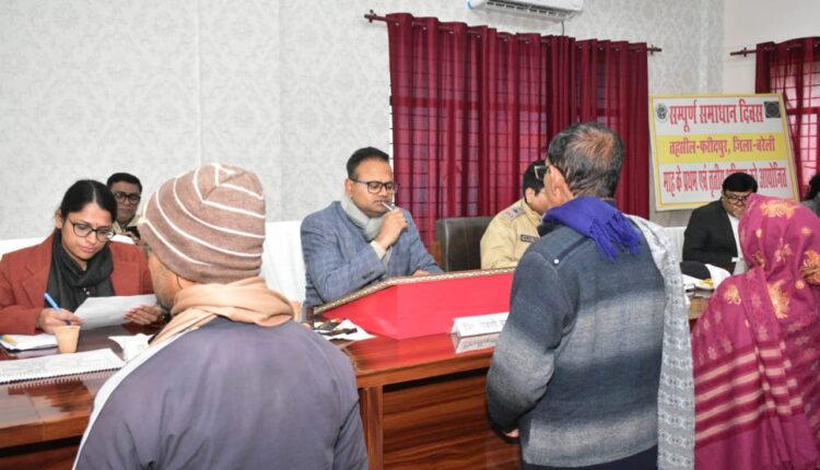 जिलाधिकारी ने सम्पूर्ण समाधान दिवस में अपनी समस्याएं व शिकायत लेकर आए लोगों की बातों को सुना और उसके निवारण व निस्तारण करने हेतु संबंधित अधिकारियों को निर्देश दिए। उन्होंने कहा कि समस्याओं/शिकायतों का निस्तारण समयान्तर्गत एवं गुणवत्तापूर्ण तरीके से किया जाए।