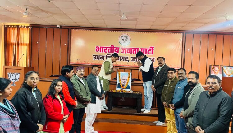 रुद्रपुर।( उपरोक्त खबर )पूर्व प्रधानमंत्री भारत रत्न करोड़ो भाजपा कार्यकताओं के प्रेरणापूंज अटल बिहारी वाजपेयी की 100वी जयंती के अवसर पर भाजपाइयो ने जिला कार्यालय बिगवाड़ा में उनके चित्र पर पुष्प अर्पित कर उनकी जन्म जयंती को मनाया। अटल बिहारी वाजपेयी उन नेताओं में शुमार थे, जिनको सर्वमानीय नेता कहा जाता था पक्ष से लेकर विपक्ष तक उनके कायल थे।