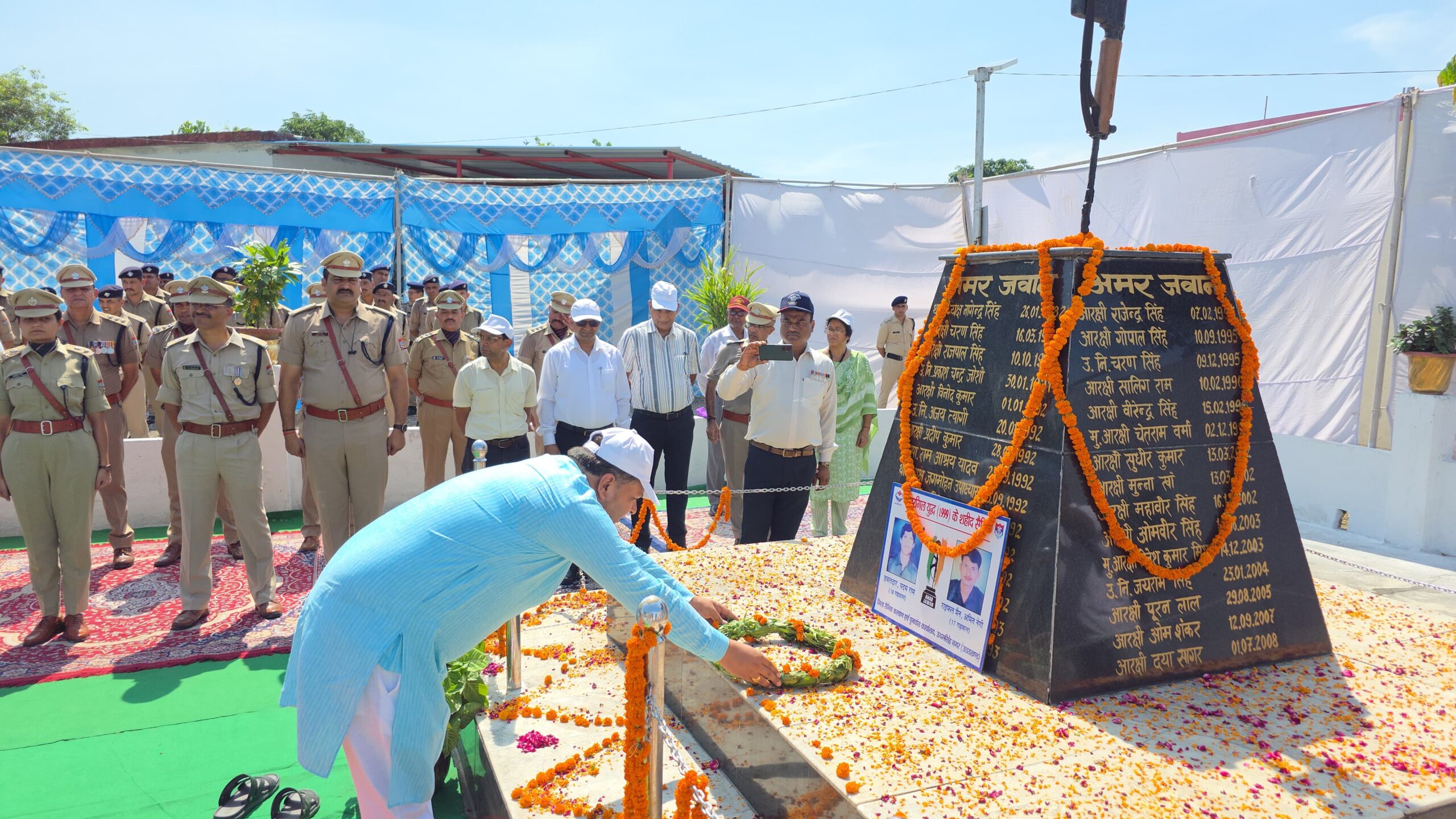 रूद्रपुर। उपरोक्ता खबर कारगिल विजय दिवस महापौर विकास शर्मा ने रुद्रपुर पुलिस लाइन स्थित शहीद स्मारक स्थल पर जिलाधिकारी नितिन भदौरिया, वरिष्ठ पुलिस अधीक्षक मणिकांत मिश्रा जी नगर आयुक्त नरेश दुर्गा पाल जी सीडीओ दिवेश शासनी प्रशासनिक अधिकारियों एवं कर्मचारियों के साथ कारगिल युद्ध के शहीद वीर सैनिकों को श्रद्धासुमन अर्पित कर उन्हें नमन किया।