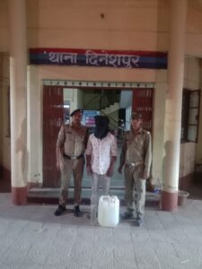 दिनेशपुर। वरिष्ठ पुलिस अधीक्षक, के निर्देशानुसार जनपद में अवैध शराब की बिक्री एवं कसीदगी की रोकथाम हेतु चलाये जा रहे अभियान के क्रम में थाना दिनेशपुर पुलिस द्वारा मुखबिर की सूचना पर अभियुक्त कुलविन्दर सिंह उर्फ राजवीर पुत्र जसपाल सिंह निवासी अर्जुनपुर कोतवाली रुद्रपुर जिला उधमसिंहनगर को मोहनपुर न0 02 शमशानघाट थाना दिनेशपुर के पास से एक प्लास्टिक की जरीकेन में करीब 20 लीटर अवैध कच्ची शराब के साथ गिरफ्तार कर अभियुक्त के विरूद्ध थाना दिनेशपुर में धारा 60 आबकारी अधिनियम का मुकदमा पंजीकृत किया गया।