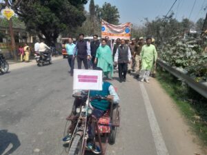 पीलीभीत दिव्यांगजन सशक्तीकरण विभाग द्वारा दिव्यांगजनों के साथ मतदाता जागरूकता रैली का आयोजन किया गया। रैली में लोकसभा चुनाव में दिनांक 19.04.2024 को शत-प्रतिशत मतदान करने का आह्वान किया गया। 50 दिव्यांगजनों की ट्राइसाइकिल व मोटराईज्ड ट्राइसाइकिल सहित व मूकबधिर दिव्यांगजनों की रैली को जिलाधिकारी/जिला निर्वाचन अधिकारी संजय कुमार सिंह द्वारा हरी झण्डी दिखाई गई। रैली आदर्श जिला दिव्यांग पुनर्वास केन्द्र से प्रारम्भ होकर छतरी चैराहा व सुनगढी थाने होते हुये गांधी स्टेडियम पर समाप्त हुई। रैली के समापन पर गांधी स्टेडियम में जिला विद्यालय निरीक्षक द्वारा सभी को मतदान करने की शपथ दिलाई गई। इस अवसर पर जनपदीय स्वीप कोआर्डिनेटर इन्तजार खान के द्वारा दिव्यांगजन मतदाताओं को मतदान के प्रति जागरूक करने के उद्देश्य से मतदाता जागरूकता ग्रीटिंग कार्ड बाटंकर शत प्रतिशत मतदान करने की अपील की गई। इस कार्यक्रम में अपर जिलाधिकारी ऋतु पूनिया, उप जिलाधिकारी, जिला विद्यालय निरीक्षक, जनपदीय स्वीप कोर्डिनेटर जिला दिव्यांगजन सशक्तीकरण अधिकारी एवं जिला क्रीडा अधिकारी मौजूद रहे। संवाददाता आरिश खान की रिपोर्ट