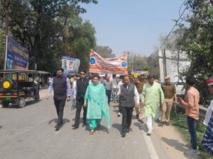 पीलीभीत दिव्यांगजन सशक्तीकरण विभाग द्वारा दिव्यांगजनों के साथ मतदाता जागरूकता रैली का आयोजन किया गया। रैली में लोकसभा चुनाव में दिनांक 19.04.2024 को शत-प्रतिशत मतदान करने का आह्वान किया गया। 50 दिव्यांगजनों की ट्राइसाइकिल व मोटराईज्ड ट्राइसाइकिल सहित व मूकबधिर दिव्यांगजनों की रैली को जिलाधिकारी/जिला निर्वाचन अधिकारी संजय कुमार सिंह द्वारा हरी झण्डी दिखाई गई। रैली आदर्श जिला दिव्यांग पुनर्वास केन्द्र से प्रारम्भ होकर छतरी चैराहा व सुनगढी थाने होते हुये गांधी स्टेडियम पर समाप्त हुई। रैली के समापन पर गांधी स्टेडियम में जिला विद्यालय निरीक्षक द्वारा सभी को मतदान करने की शपथ दिलाई गई। इस अवसर पर जनपदीय स्वीप कोआर्डिनेटर इन्तजार खान के द्वारा दिव्यांगजन मतदाताओं को मतदान के प्रति जागरूक करने के उद्देश्य से मतदाता जागरूकता ग्रीटिंग कार्ड बाटंकर शत प्रतिशत मतदान करने की अपील की गई। इस कार्यक्रम में अपर जिलाधिकारी ऋतु पूनिया, उप जिलाधिकारी, जिला विद्यालय निरीक्षक, जनपदीय स्वीप कोर्डिनेटर जिला दिव्यांगजन सशक्तीकरण अधिकारी एवं जिला क्रीडा अधिकारी मौजूद रहे। संवाददाता आरिश खान की रिपोर्ट