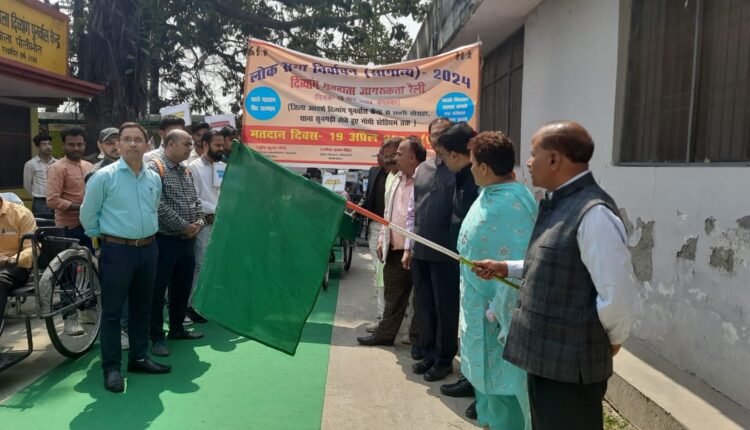 जिला निर्वाचन अधिकारी ने मतदाता जागरूकता दिव्यांगजनों की रैली को हरी झण्डी दिखाकर किया रवाना।