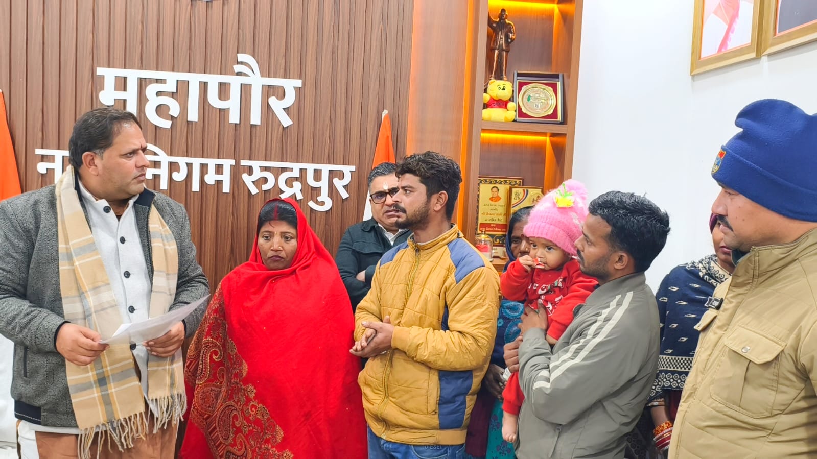 रूद्रपुर। माता-पिता से बिछुड़े दस माह के मासूम को महापौर विकास शर्मा की त्वरित पहल और मानवीय संवेदनशीलता के चलते सुरक्षित रूप से उसके परिवार से मिलाया गया। कई घंटों की बेचैनी और चिंता के बाद जब मासूम सकुशल मिला, तो परिजनों के चेहरे पर राहत और खुशी साफ झलकने लगी। इस दौरान परिजनों ने महापौर विकास शर्मा का आभार व्यक्त करते हुए उनकी तत्परता की सराहना की।