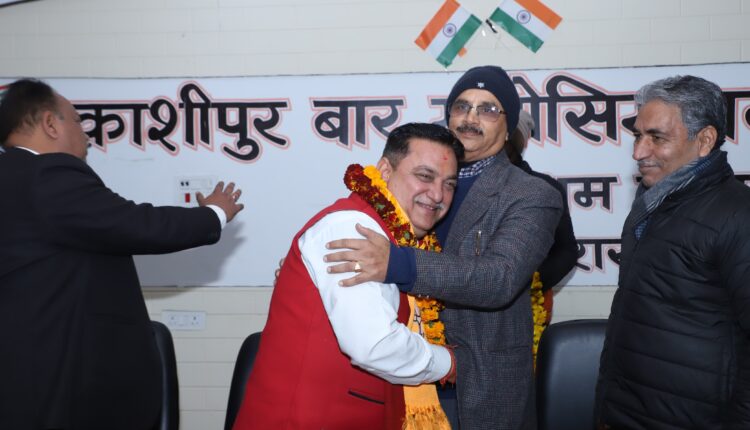 काशीपुर। (उपभोक्ता खबर) आज यहां काशीपुर बार एसोसिएशन ने भाजपा मेयर प्रत्याशी दीपक बाली का शानदार स्वागत किया और उन्हें चुनाव में समर्थन का आश्वासन दिया। अधिवक्ताओं द्वारा अपने प्रति दिखाए गए जोश और सहयोग व समर्थन के आश्वासन को देखकर श्री बाली भी भाव विभोर हो गए। उन्होंने कहा कि अधिवक्ताओं ने मुझे जो सम्मान दिया है मैं उसके लिए आभारी हूं और विश्वास दिलाता हूं कि आप लोगों ने यदि मुझे सेवा का मौका दिया तो मैं स्वस्थ स्वच्छ एवं सुंदर काशीपुर बनाने में कोई कमी नहीं छोडूंगा। अधिवक्ताओं द्वारा दिए गए समर्थन से कांग्रेस प्रत्याशी के खेमे में हड़कंप मचा है क्योंकि वे मान रहे थे कि बार एसोसिएशन का समर्थन केवल कांग्रेस प्रत्याशी को ही रहेगा क्योंकि कांग्रेस प्रत्याशी एक अधिवक्ता है जिसे अब अधिवक्ताओं में सेंघ लगती नजर आ रही है। आज के इस कार्यक्रम में सैकड़ो अधिवक्ताओं ने भाग लिया।
