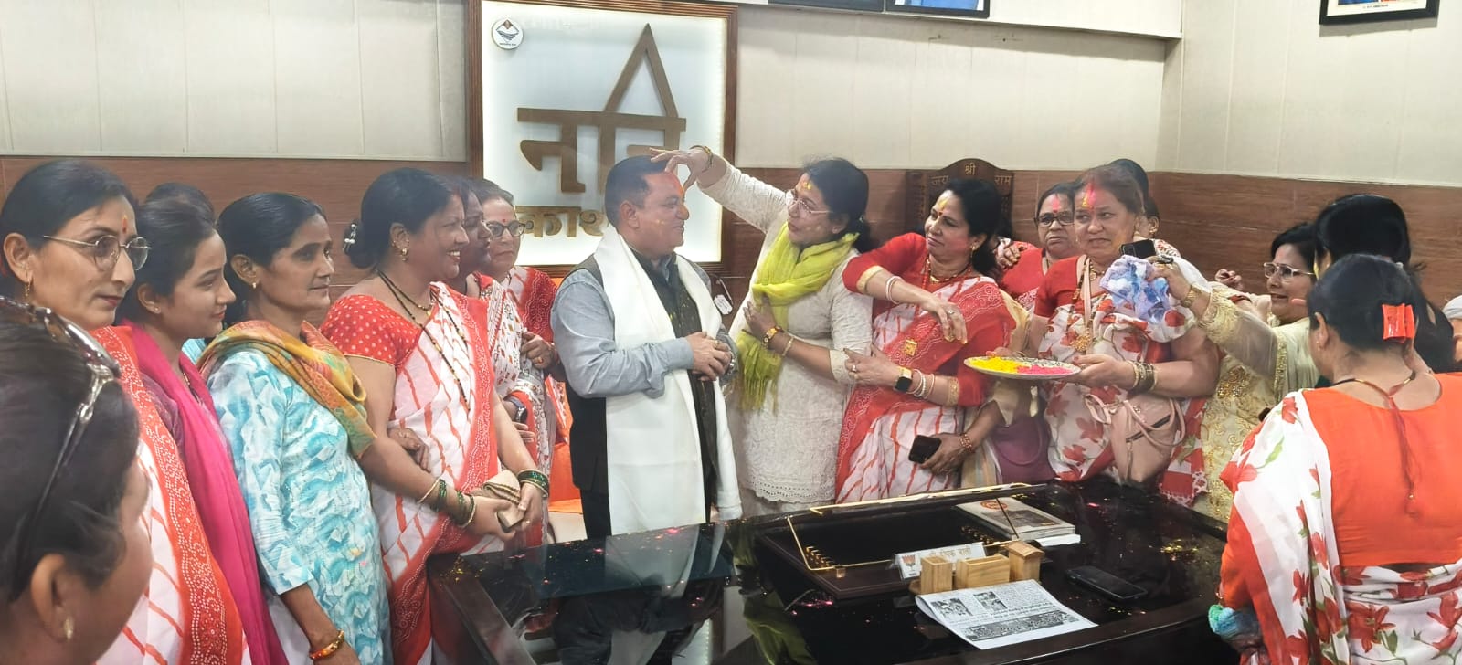 काशीपुर के नगर व क्षेत्र की अनेक महिलाओं ने नगर निगम कार्यालय पहुंचकर महापौर दीपक बाली को रंग लगाकर दी होली की शुभकामनाएं