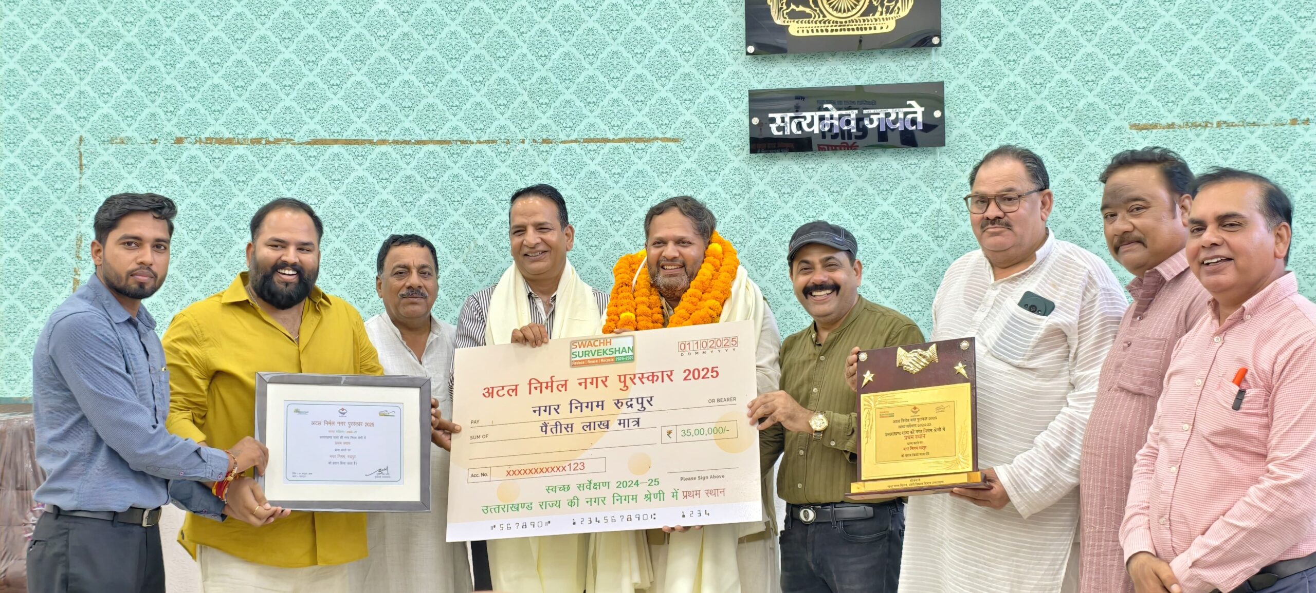 उल्लेखनीय है कि नगर निगम रूद्रपुर को बीते 1 अक्टूबर को देहरादून में मुख्य सेवक सदन में आयोजित भव्य समारोह में मुख्यमंत्री पुष्कर सिंह धामी ने अटल निर्मल नगर पुरस्कार के रूप में 35 लाख की धनराशि का चेक देकर सम्मानित किया था। यह पुरस्कार मुख्यमंत्री से महापौर विकास शर्मा और नगर आयुक्त नरेश दुर्गापाल ने प्राप्त किया। नगर निगम रूद्रपुर को यह पुरस्कार स्वच्छ भारत मिशन के तहत भारत सरकार के आवासन एवं शहरी कार्य मंत्रालय द्वारा वर्ष 2024-25 के स्वच्छता सर्वेक्षण में निर्धारित मानकों के आधार पर नगर निगम रूद्रपुर को नगर निगम श्रेणी में प्रथम स्थान प्राप्त होने पर प्रदान किया गया।