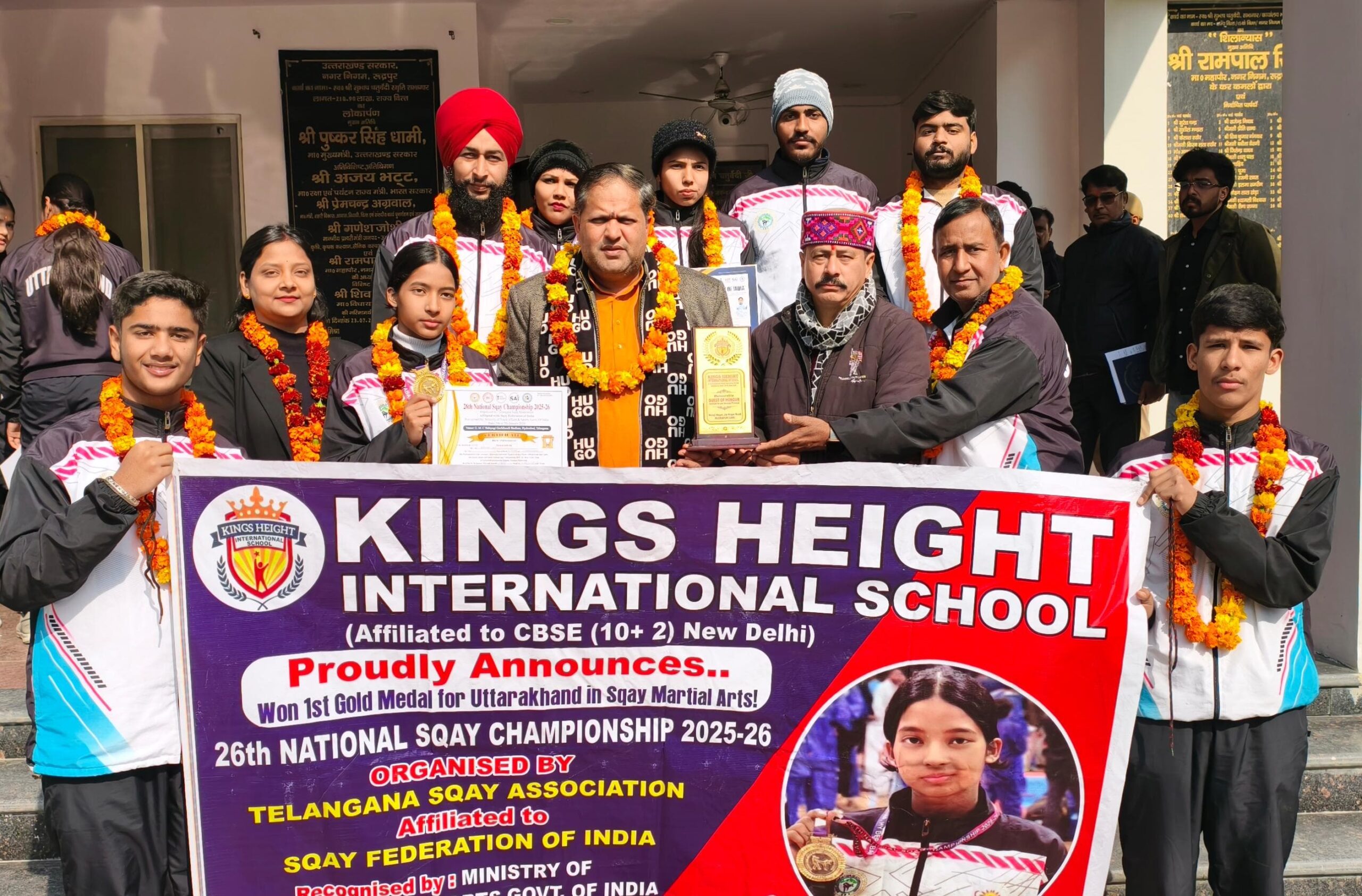 रुद्रपुर । हैदराबाद (तेलंगाना) में आयोजित 26वीं कैडेट सब जूनियर, जूनियर और सीनियर स्क्वे मार्शल आर्ट राष्ट्रीय प्रतियोगिता में उत्तराखंड की टीम ने शानदार प्रदर्शन करते हुए सफलता के झंडे गाड़े हैं। प्रतियोगिता में पदक जीतकर लौटे शहर के होनहार खिलाड़ियों का नगर निगम परिसर में भव्य स्वागत किया गया। महापौर विकास शर्मा ने विजेता खिलाड़ियों को फूल-मालाएं पहनाकर सम्मानित किया और उनकी उपलब्धि पर शाबाशी दी। महापौर ने टीम की इस बड़ी जीत के लिए स्क्वे एसोसिएशन ऑफ उत्तराखंड के सचिव मोहम्मद हसन खान के प्रयासों की भी सराहना की।