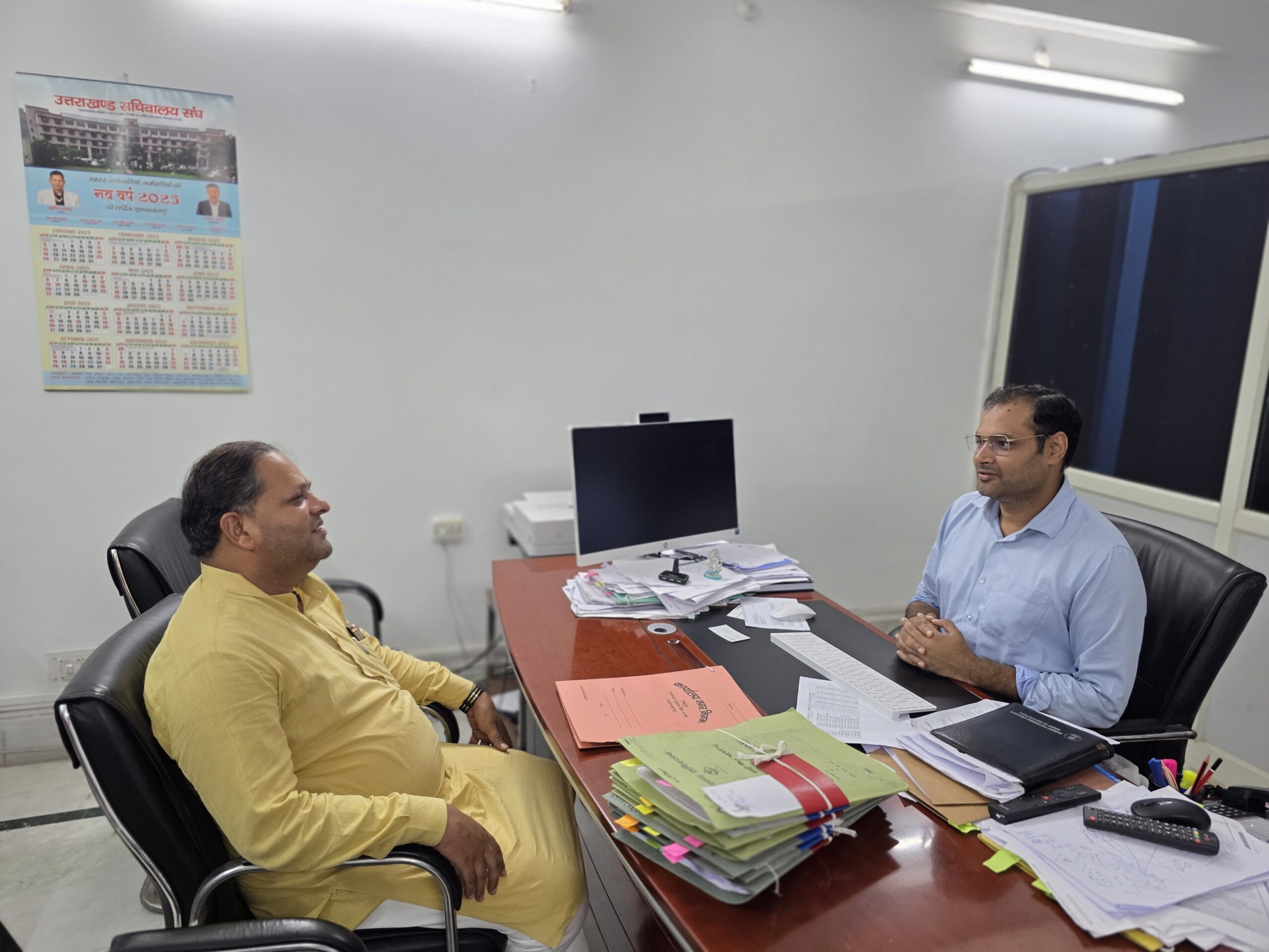 देहरादून/रूद्रपुर। (उपभोक्ता खबर) नगर निगम रूद्रपुर की लंबित योजनाओं और शहर की जनसमस्याओं को लेकर महापौर विकास शर्मा ने देहरादून स्थित सचिवालय में शहरी विकास विभाग के सचिव नितेश झा और डायरेक्टर गौरव कुमार से शिष्टाचार भेंट की। मुलाकात के दौरान महापौर ने न केवल पुरानी योजनाओं के शीघ्र निस्तारण की मांग उठाई, बल्कि शहर के समग्र विकास को ध्यान में रखते हुए कई नये प्रस्ताव भी उनके समक्ष रखे।