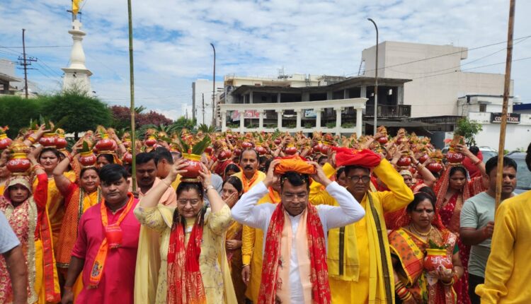 कल से नवरंग वाटिका मे शुरू होने वाली श्रीरामकथा के पूर्व निकाली गई भव्य कलश यात्रा मे शामिल हुऐ विधायक शिव अरोरा