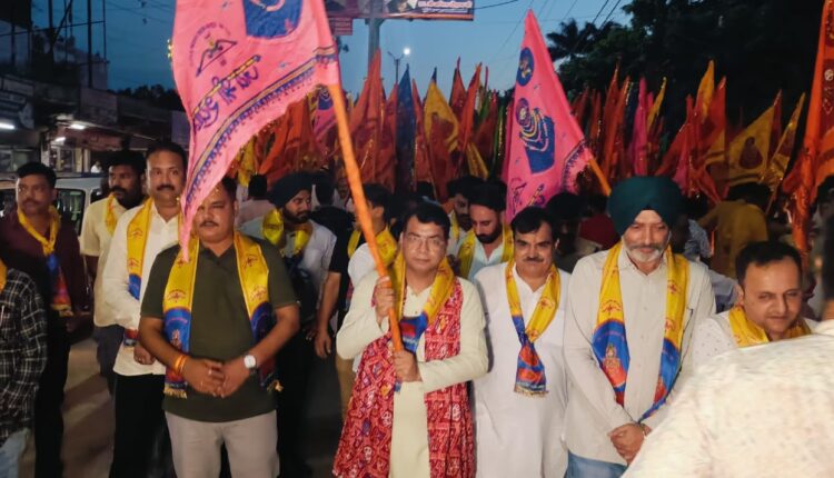 वही क्षेत्रीय विधायक शिव अरोरा भी हाथ मे निशान लिये यात्रा मे शामिल हुए यात्रा बाईपास रोड होते हुए गाँधी पार्क मुख्य बाजार होते हुए गल्ला मंडी खाटू श्याम मंदिर पर यात्रा का समापन हुआ।