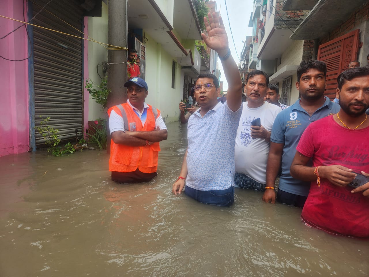 विधायक शिव अरोरा ने कल्याणी नदी से सटे हुए जलभराव वाले शिवनगर, आजादनगर क्षेत्र का किया पैदल भ्रमण, विधायक ने बचाव कार्य मे लगी प्रशासन व एसडीआरएफ की टीम से रेस्क्यू कार्य की लीं जानकारी