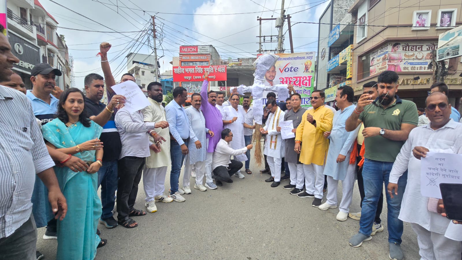 सदन बाधित करने पर भाजपाइयो ने जिला अध्यक्ष कमल जिंदल के नेतृत्व मे फूंका कांग्रेस का पुतला