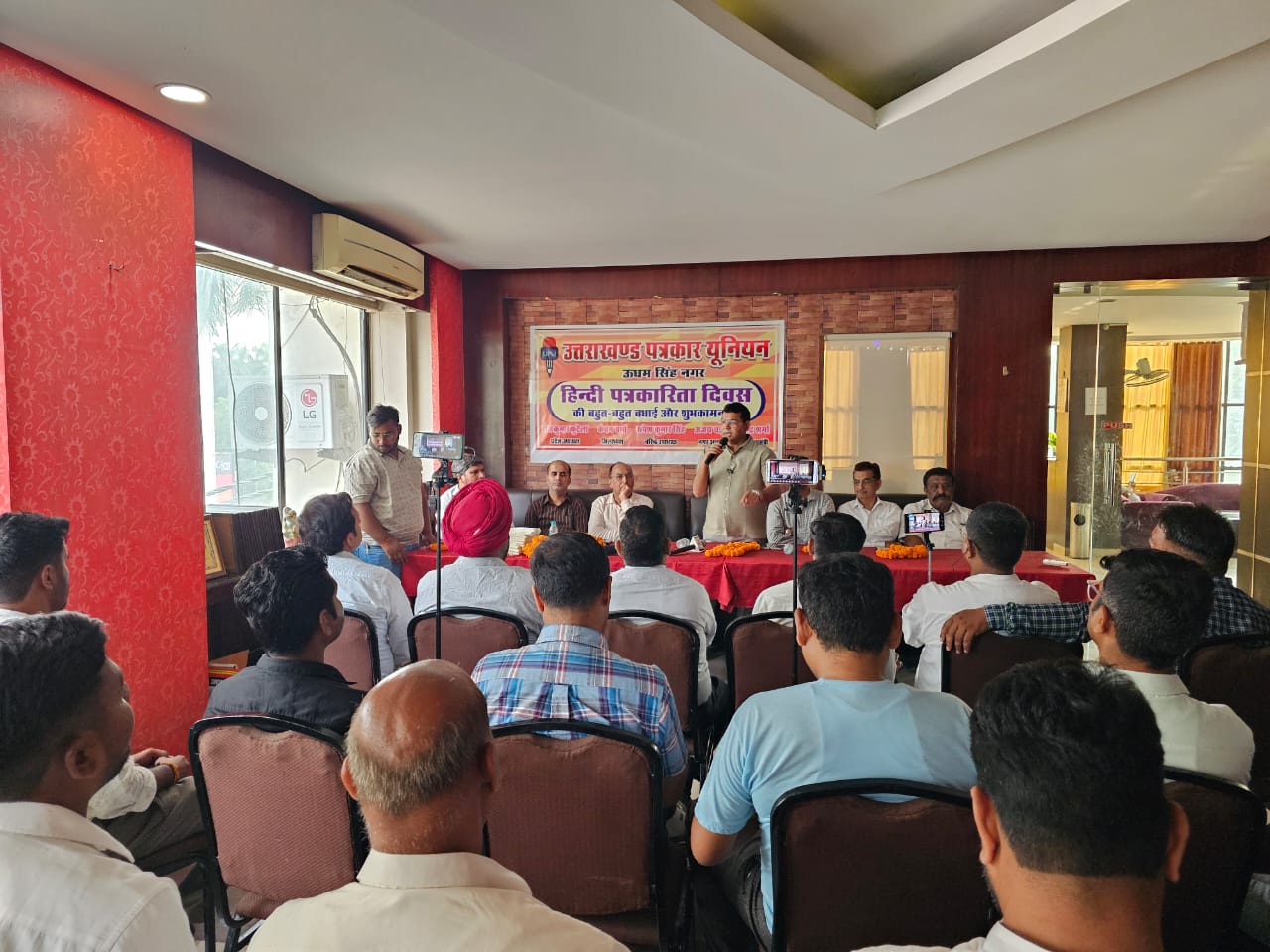 रुद्रपुर। (उपभोक्ता खबर) हिंदी पत्रकारिता दिवस के अवसर पर आयोजित पत्रकार सम्मान समारोह जहां एक ओर पत्रकारों के कार्यों को सम्मान देने का मंच बना, वहीं यह आयोजन पत्रकारों की वर्षों पुरानी मांगों को फिर से मुखर करने का माध्यम भी बन गया। उत्तराखंड पत्रकार यूनियन की ओर से शुक्रवार को रुद्रपुर आवास विकास स्थित रिवेरा होटल में यह गरिमामयी कार्यक्रम आयोजित किया गया। मुख्य अतिथि के रूप में रुद्रपुर विधायक शिव अरोड़ा और विशिष्ट अतिथि समाजसेवी सुशील गाबा ने कार्यक्रम की शोभा बढ़ाई। समारोह में पत्रकारिता क्षेत्र में उल्लेखनीय योगदान देने वाले पत्रकारों को सम्मानित किया गया। मंच संचालन शिवम शर्मा ने किया, जिन्होंने समारोह की गरिमा को कुशलतापूर्वक बनाए रखा। समारोह के दौरान पत्रकारों की सामाजिक और पेशेवर चुनौतियों पर खुलकर चर्चा हुई। विशेष रूप से रुद्रपुर में वर्षों से निष्क्रिय पड़े प्रेस भवन को दोबारा सक्रिय करने की मांग ने केंद्र में स्थान पाया। वक्ताओं ने इस विषय को गंभीरता से उठाया, जिस पर विधायक शिव अरोड़ा ने आश्वस्त किया कि वे प्रशासन के साथ शीघ्र बैठक कर इस मुद्दे के समाधान की दिशा में कदम उठाएंगे। उन्होंने प्रेस क्लब के लिए सात लाख रुपये देने की भी घोषणा की। इस अवसर पर उत्तराखंड पत्रकार यूनियन के प्रदेश उपाध्यक्ष राजकुमार फुटेला, जिला अध्यक्ष कंचन वर्मा, वरिष्ठ उपाध्यक्ष रूपेश कुमार सिंह, नगर अध्यक्ष अजय चड्ढा, वरिष्ठ पत्रकार कस्तूरी लाल तागरा, बरीत सिंह, सुरेंद्र गिरधर, संदीप यादव, देवेंद्र शर्मा, ललित शर्मा, राजीव चावला, अजय जोशी, नगर महामंत्री सुरेंद्र शर्मा, कोषाध्यक्ष रंजीत कुमार, गुरविंदर गिल, गोपाल भारती, भानु चुघ, उपसचिव कश्मीर राणा, सचिव चंद्रसेन गंगवार, मीडिया प्रभारी अनुज सक्सेना सहित पत्रकार भूपेश छिमवाल, बबलू, नितिन सिंघल, हिमांशु नरूला, राहुल, मधुरदीप सिंगल, वीरेंद्र कुमार आर्य, प्रदीप मंडल, वीरेश कुमार सिंह, रामपाल धनगर, अंकुर चुघ, अजीत सिंह चौहान, नरेंद्र राठौर, अमन सिंह, अर्जुन कुमार, रवि, हरविंदर सिंह चावला, विकास कुमार, मनीष कश्यप, सूरज राजपूत और शिवम दास समेत बड़ी संख्या में पत्रकारों की उपस्थिति ने आयोजन को प्रभावशाली बना दिया।