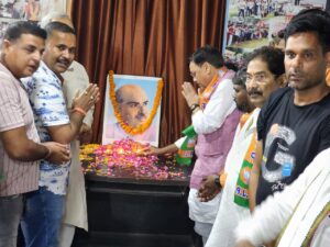 डॉक्टर. श्यामा प्रसाद मुखर्जी के बलिदान दिवस के अवसर पर पूर्व विधायक राजेश शुक्ला ने अपने आवास पर कार्यकर्ताओं के साथ उनके चित्र पर पुष्पांजलि कर अपनी श्रद्धांजलि दी