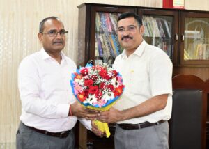 नव नियुक्त जिलाधिकारी उदय राज सिंह ने कैम्प कार्यालय पहंुचकर निर्वतमान जिलाधिकारी युगल किशोर पंत भेट किया।