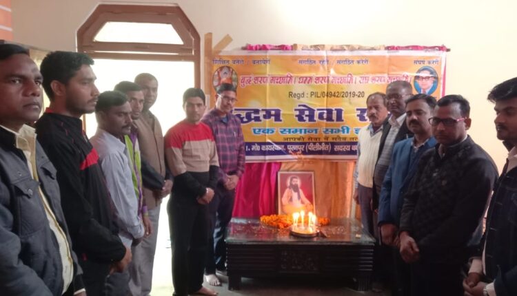 उनके चित्र पर पुष्प अर्पित कर उनके दिये गये सिद्धांतों पर चलने पर चलने की प्रेरणा दी गई समस्त जाटव समाज के लोगों को शिक्षा को अधिक से अधिक लोगों को जागरूक किया जाए