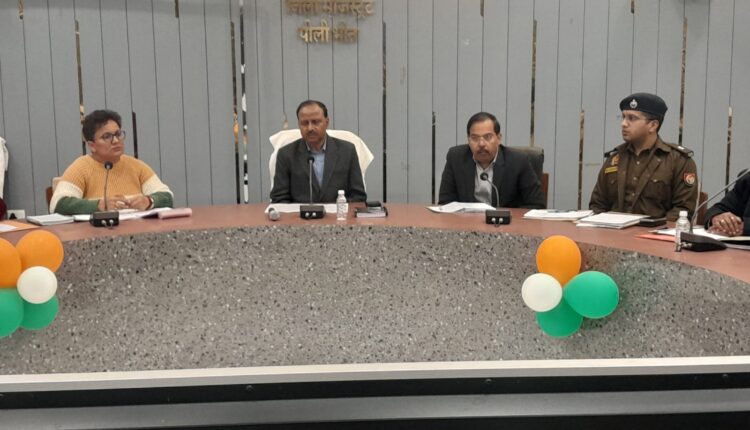 पीलीभी  निर्वाचन आयोग के निर्देशों के क्रम में आगामी लोक सभा सामान्य निर्वाचन-2024 को निष्पक्ष ,शांतिपूर्वक, स्वतंत्र एवं सुचारु रुप से सकुशल संपन्न कराने के उद्देश्य से आज जिला मजिस्ट्रेट/जिला निर्वाचन अधिकारी श्री संजय कुमार सिंह की अध्यक्षता में प्रभारी अधिकारियो के साथ बैठक गांधी सभागार में सम्पन्न हुई। बैठक के दौरान नाम निर्देशन व्यवस्था सम्बन्धी सम्पूर्ण प्रक्रिया का सम्पादन एवं कलेक्टेªट में शांति व्यवस्था सुनिश्चित कराये जाने हेतु अपर जिला मजिस्टेªट (वि./रा.)/उप जिला निर्वाचन अधिकारी द्वारा की जायेगी। बैठक में मुख्य विकास अधिकारी को निर्देश दिये कि एफएसटी, एसएसटी व वी0एस0टी की टेªनिंग कराना सुनिश्चित किया जाये। लेखन सामग्री, प्रपत्र एवं किट व्यवस्था/समस्त निर्वाचन सामग्री की समीक्षा के दौरान उप कृषि निदेशक द्वारा अवगत कराया गया कि टेण्डर हो गया है शीघ्र ही व्यवस्था पूर्ण करा ली जायेगी। वाहन एवं ईधन व्यवस्था की समीक्षा के दौरान नगर मजिस्टेªट द्वारा अवगत कराया गया कि 67 वाहनों की कमी हैं उन्हें भी शीघ्र पूर्ण करा लिया जायेगा। ई0वी0एम0 एवं वी0वी0पैट व्यवस्था बन्दोबस्त अधिकारी चकबन्दी एवं उप जिलाधिकारी सुरक्षा व्यवस्था के इंतजाम कराये जायेगें। टेंन्ट/फर्नीचर/बैरीकेटिंग/साउण्ड, प्रकाश एवं विद्युत व्यवस्था/जनरेटर की समीक्षा के दौरान सम्बन्धित द्वारा अवगत कराया गया कि टेण्डर प्रक्रिया पूर्ण करा ली गई तथा व्यय लेखा एवं आयोग के निर्देशानुसार सम्बन्धित विभिन्न टीमों का गठन के सम्बन्ध में वरिष्ठ कोषाधिकारी द्वारा अवगत कराया गया कि टीमो का गठन किया जा चुका है। मतपत्र व्यवस्था, पोस्टल बैलेट/ई0डी0सी0 व्यवस्था/ई0टी0पी0वी0एस0/कार्मिक मतपत्र सम्बन्धित अन्य व्यवस्थायें की समीक्षा के दौरान सहायक आयुक्त एवं सहायक निबन्धक द्वारा अवगत कराया गया टेक्नीकल टीम के गठन का कार्य अवशेष है उसे भी शीघ्र गठन कर लिया जायेगा। रूटचार्ट/कम्यूनिकेशन प्लान, क्रिटिकल/वल्नरेबिलिटी मैपिंग एवं पोलिंट पार्टी रवानगी तथा पोल डे व्यवस्था, डिस्ट्रिक्ट इलेक्शन मैनेजमेन्ट प्लान, प्रेक्षक बूथ निर्माण एवं ए0एम0एफ0 व्यवस्था, कम्प्यूटर एवं नेट कनेक्टिविटी व्यवस्था एस0एम0एस0/डाटा प्रेषण अनुभाग/सूचना प्रेषण व्यवस्था, भोजन एवं जलपान व्यवस्था, मीडिया प्रबंधन, नियंत्रण कक्ष व्यवस्था एवं शिकायत के सम्बन्ध में सम्बन्धित अधिकारियों से व्यवस्थाओं के सम्बन्ध में जानकारी प्राप्त करते हुये शीघ्र समस्त कार्यों को पूर्ण कराने के निर्देश दिये। प्राथमिक चिकित्सा एवं औषधि किट व्यवस्था के सम्बन्ध में मुख्य चिकित्साध्किारी द्वारा अवगत कराया गया कि विधानसभा वार टीमों को मेडिसीन किट प्रदान करा दी जाय