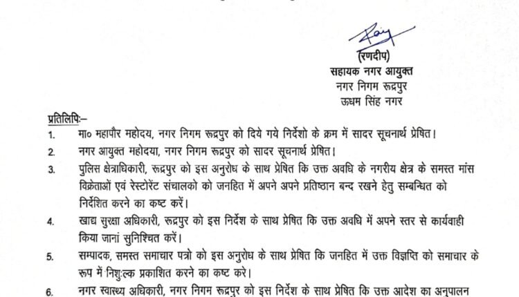 नवरात्र पर रूद्रपुर में मांस की बिक्री पर रहेगा प्रतिबंध – कच्चा और पका हुआ मांस बेचा तो होगी कार्रवाईः महापौर