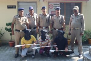रुद्रपुर क्षेत्र में तलवारें लहराकर मारपीट कर समाज में दशहत फैलाने वाले तीन आरोपियों को ऊधम सिंह नगर पुलिस ने किया गिरफ्तार।