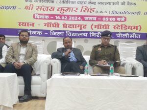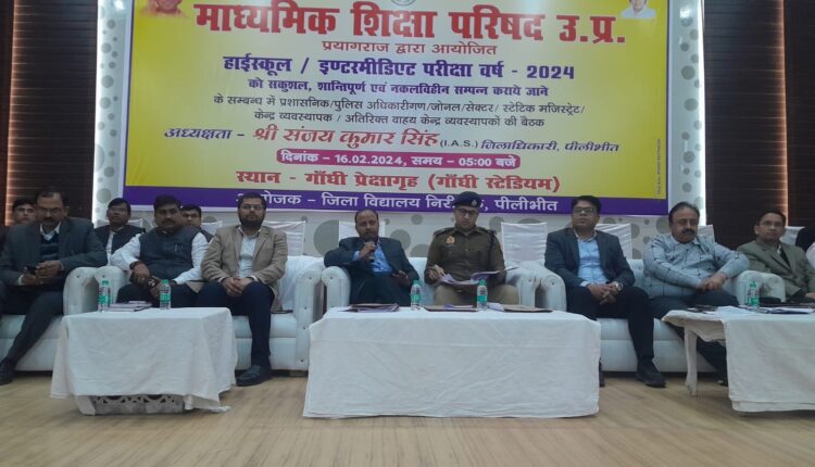पीलीभीत।/जिलाधिकारी संजय कुमार सिंह की अध्यक्षता में यूपी बोर्ड की परीक्षा शान्तिपूर्ण नकलविहीन, सकुशल व निर्विघ्न ढ़ंग से सम्पन्न कराने हेतु नामित जोनल, सेक्टर मजिस्ट्रेट, स्टैटिक मजिस्ट्रेट, केन्द्र व्यवस्थापक एवं अतिरिक्त केन्द्र व्यवस्थापक सहित अन्य अधिकारियों बैठक गांधी प्रेक्षागृह में सम्पन्न हुई। यू0पी0 बोर्ड परीक्षा जनपद के 76 परीक्षा केन्द्रों पर दो पालियों में परीक्षा दिनांक 22 फरवरी 2024 से आयोजित की जायेगी। उक्त परीक्षा प्रथम पाली प्रातः 8ः30 बजे से 11ः45 व द्वितीय पाली 2ः00 बजे से 5ः15 तक आयोजित की जायेगी। हाईस्कूल की परीक्षा में 24,970 व इण्टरमीडिएट परीक्षा में 19,740 परीक्षार्थियों द्वारा प्रतिभाग किया जायेगा। उन्होंने कहा कि परीक्षा केन्द्रों पर प्रश्नपत्रों की सुरक्षा के लिए अगल से स्ट्रांगरूम की व्यवस्था की गई स्ट्रांग रूम में 24 घंटे सीसीटीवी कैमरे की निगरानी में रहेगा। उन्होंने परीक्षा की तैयारियों के सम्बन्ध में आवश्यक दिशा निर्देश देते हुए कहा कि समस्त परीक्षा केन्द्र हेतु नामित अधिकारी समय से परीक्षा केन्द्रों पर पहुंचे और अपनी निगरानी में सीसीटीवी कैमरे के सामाने पेपर खोलने व परीक्षा समाप्त होने के उपरान्त कापियों के सील कराने का कार्य कराना सुनिश्चित करेगें। उन्होंने कहा कि परीक्षा के दौरान सीसीटीवी कैमरे नियमित संचालित रहे, परीक्षा पूर्व सभी सेक्टर मजिस्ट्रेट अपने क्षेत्र परीक्षा केन्द्रों का निरीक्षण करते हुये बुनियादी सुविधाऐं व परीक्षा केन्द्र के मानकों की जांच कर रिपोर्ट प्रस्तुत करेगें, यदि कोई कमी पाई तो तत्काल केन्द्र व्यवस्थापक से ठीक कराये। उन्होंने कहा कि केन्द्र पर नामित अधिकारियों की पूर्ण जिम्मेदारी सुनिश्चित की गई है, जिससे परीक्षा नकलविहीन सम्पन्न हो, यदि कहीं नकल की शिकायत संज्ञानित होती है तो सम्बन्धित पूरी टीम का उत्तरदायित्व निर्धारित करते हुये, कार्यवाही की जायेगी। उन्होंने कहा कि सचल दल प्रतिदिन दिये गये निर्देशानुसार भ्रमणशील रहेगा। उन्होंने कहा कि परीक्षा समाप्त होने के उपरान्त कापियों के बण्डलों को संकलन केन्द्र पर कापियां जमा की जायेगी। उन्होंने कहा कि परीक्षा को नकलविहीन सम्पन्न करायें, जिससे परिश्रम करने वाले छात्र/छात्राओं को उनका अच्छा परिणाम प्राप्त हो सके। उन्होंने कहा कि केन्द्र पर स्टेटिक मजिस्ट्रेट व केन्द्र व्यवस्थापक के अतिरिक्त अन्य किसी कर्मचारी के पास मोवाइल न रखे और केन्द्र पर जिन कर्मचारियों की ड्यूटी लगाई गई है वह अपना आई कार्ड अवश्य रखें। उन्होंने कहा कि निरीक्षण के दौरान कोई अनावश्यक पाया गया तो उसके विरूद्व कडी कार्यवाही अमल में लाई जायेगी। किसी भी प्रकार की समस्या आने पर कन