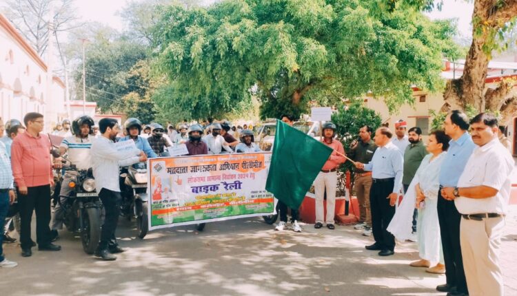 पीलीभीत माध्यमिक शिक्षा विभाग एवं बेसिक शिक्षा विभाग के तत्वावधान में मतदाताओं को मतदान के प्रति जागरूक करने के उद्देश्य से मतदाता जागरूकता बाइक रैली का आयोजन कलेक्ट्रेट परिसर से किया गया।